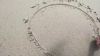 Amy Dyson enjoys the sunrise while drawing 'Washaway Enso' in the sand of Vero Beach in Florida.